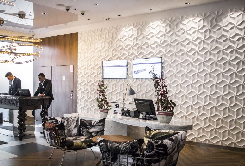 Panele dekoracyjne marki Loft Design System zostały wykorzystane w aranżacji wnętrz hotelu Mercure jako element podkreślający nowoczesny charakter przestrzeni i wysoki standard obiektu. Ich starannie zaprojektowana forma oraz dopracowane detale wprowadzają elegancki, designerski akcent, jednocześnie poprawiając akustykę i komfort gości. Zastosowanie paneli pozwoliło stworzyć spójną estetycznie przestrzeń, która łączy funkcjonalność z prestiżowym wyglądem, idealnie wpisując się w styl współczesnych wnętrz hotelowych.