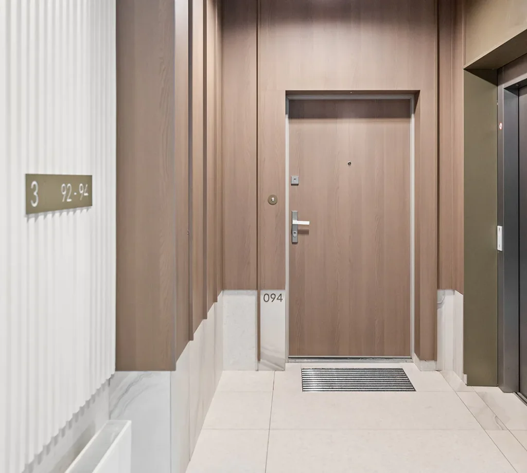 W inwestycji Apartamenty Mono w Ełku, zrealizowanej przez Rutkowski Development, zastosowano nowoczesne panele dekoracyjne marki Loft Design System. Elementy te podkreślają współczesny charakter części wspólnych budynku, nadając wnętrzom elegancki i spójny wygląd.